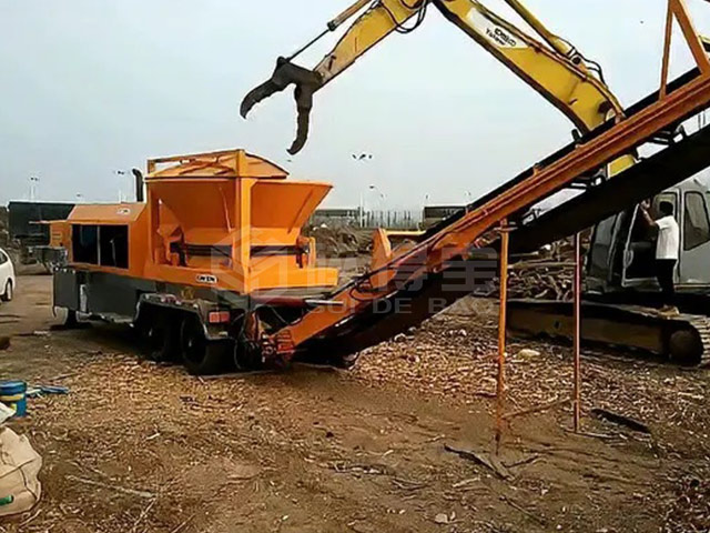 該現場廢舊木材加工生產線只采用一臺移動式圓盤破碎機作為主加工設備,配以相應輔助設備組成一條廢舊木材處理生產線,該生產線配置少、占地面積小、投資低,很適合個人投資用戶開辦。